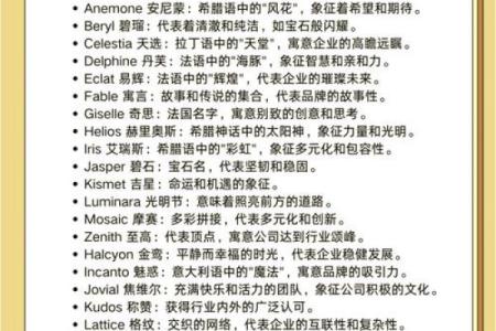 在为公司起名时,选择合适的字眼至关重要。不同类型的公司在命名时要根据行业特点和公司形象来选择有象征意义的字。通过精心挑选的字,能够...